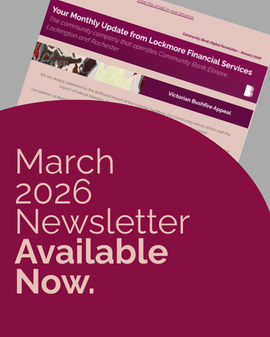 Welcome to Lockmore Financial Services Ltd. We are a locally owned and operated community company established by our locals in 2003. In partnership with Bendigo Bank, Lockmore runs Community Bank Elmore, Lockington and Rochester – a unique banking concept where the profits we generate are returned to our local community in a number of ways: